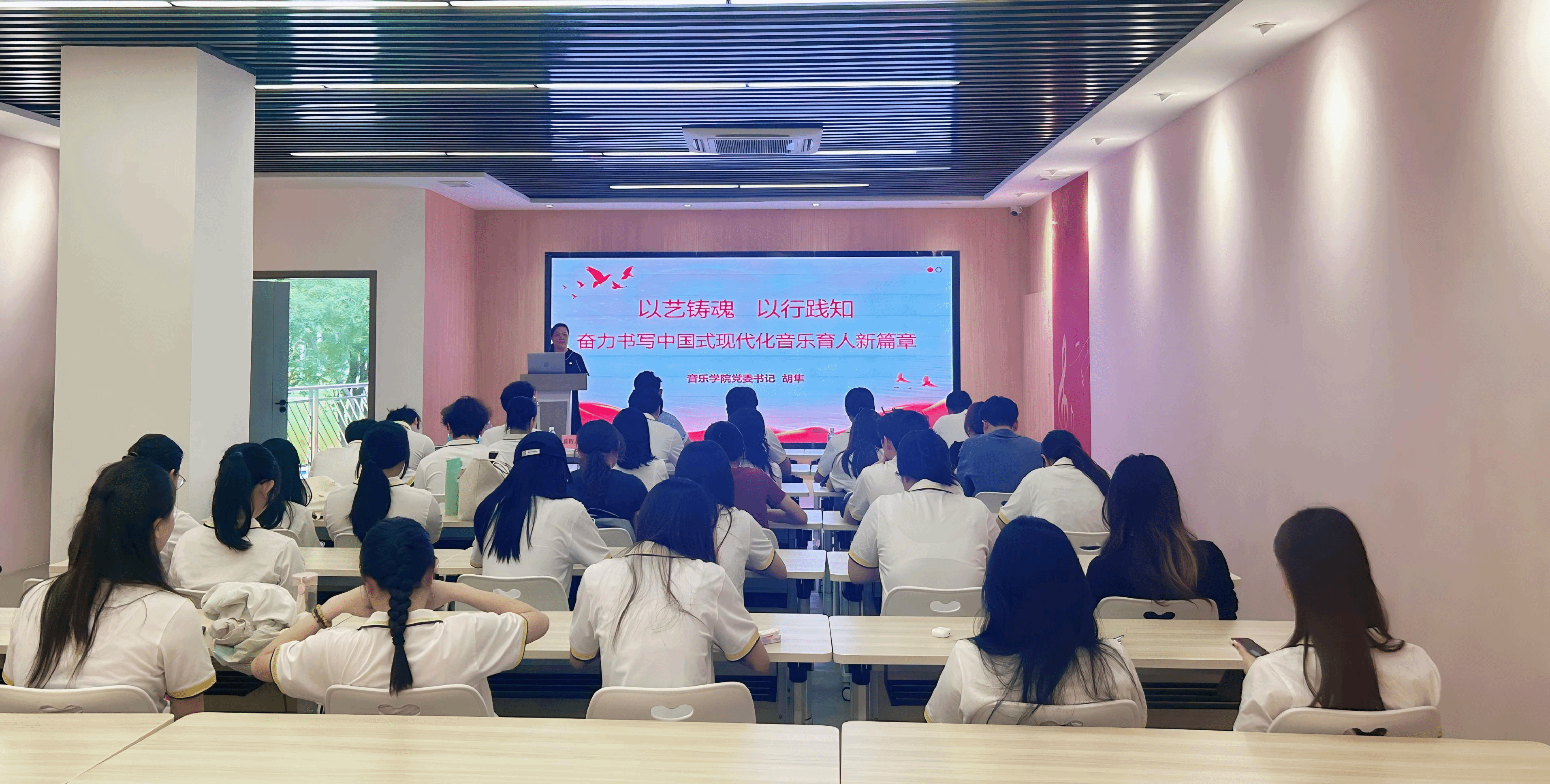 为深入学习贯彻党的二十届四中全会精神,扎实推进习近平新时代中国特色社会主义思想进校园、进课堂、进头脑,近期,学院党委书记胡隼、院长张东东先后走上讲台,为全院师生讲授专题“思政第一课”,引领全体师生把思想和行动统一到党中央决策部署上来,以艺术担当助力中国式现代化建设。学院党委书记胡隼以《以艺铸魂,以行践知,奋力书写中国式现代化音乐育人新篇章》为题,结合学院办学特色与育人实践,用鲜活案例讲透思政道...