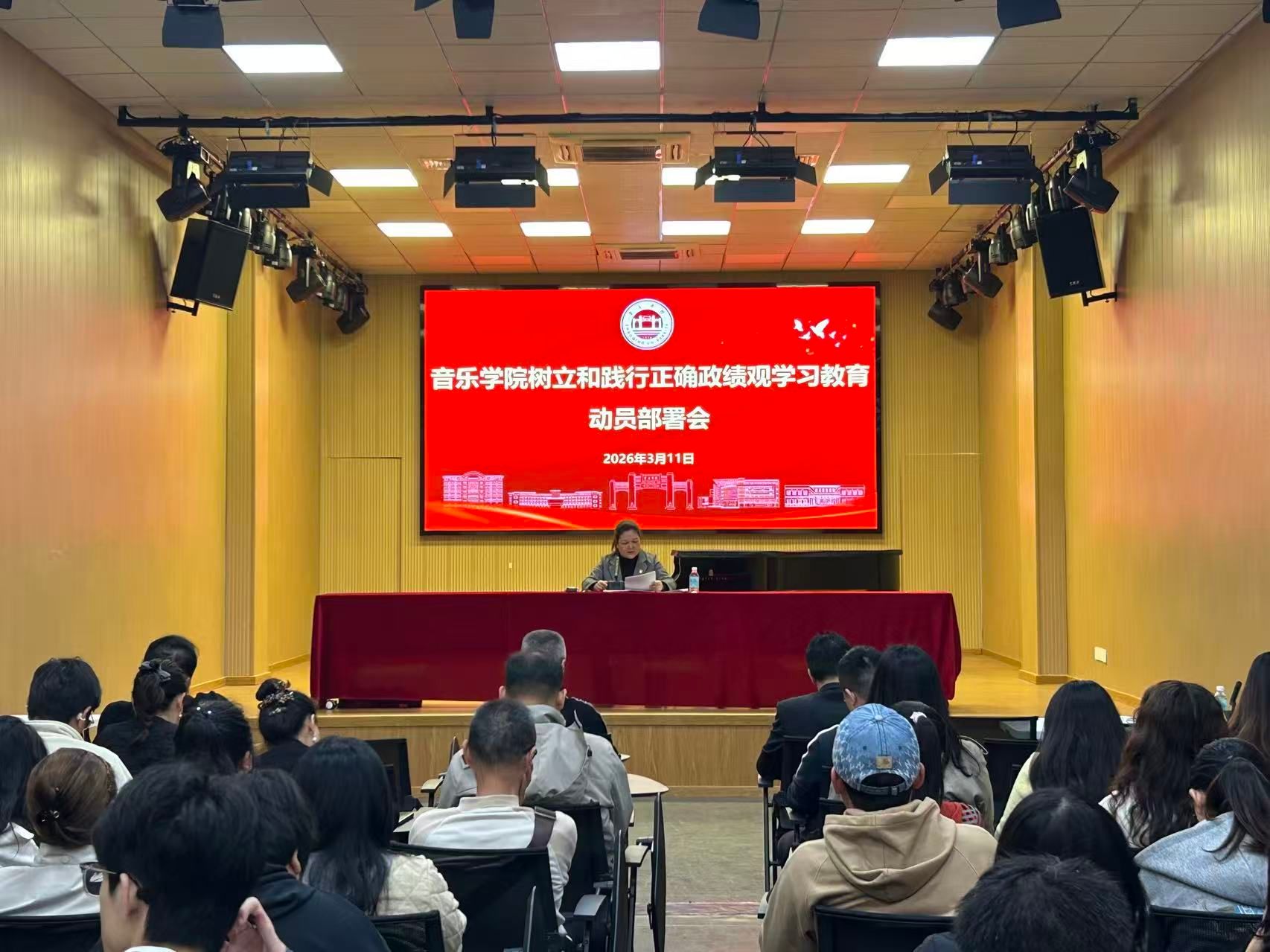 本网讯 为深入学习贯彻习近平总书记关于树立和践行正确政绩观的重要论述,全面落实党中央、省委及学校党委部署要求,3月11日,我院在音乐楼观摩厅召开树立和践行正确政绩观学习教育动员部署会。学院领导班子、全体党员参会。会上,学院党委书记胡隼作动员讲话。讲话紧扣音乐教育办学实际,明确学习教育的总要求:“立党为公、为民造福、科学决策、真抓实干”,深刻阐释树立和践行正确政绩观的重大意义。指出此次学习教育是2026...