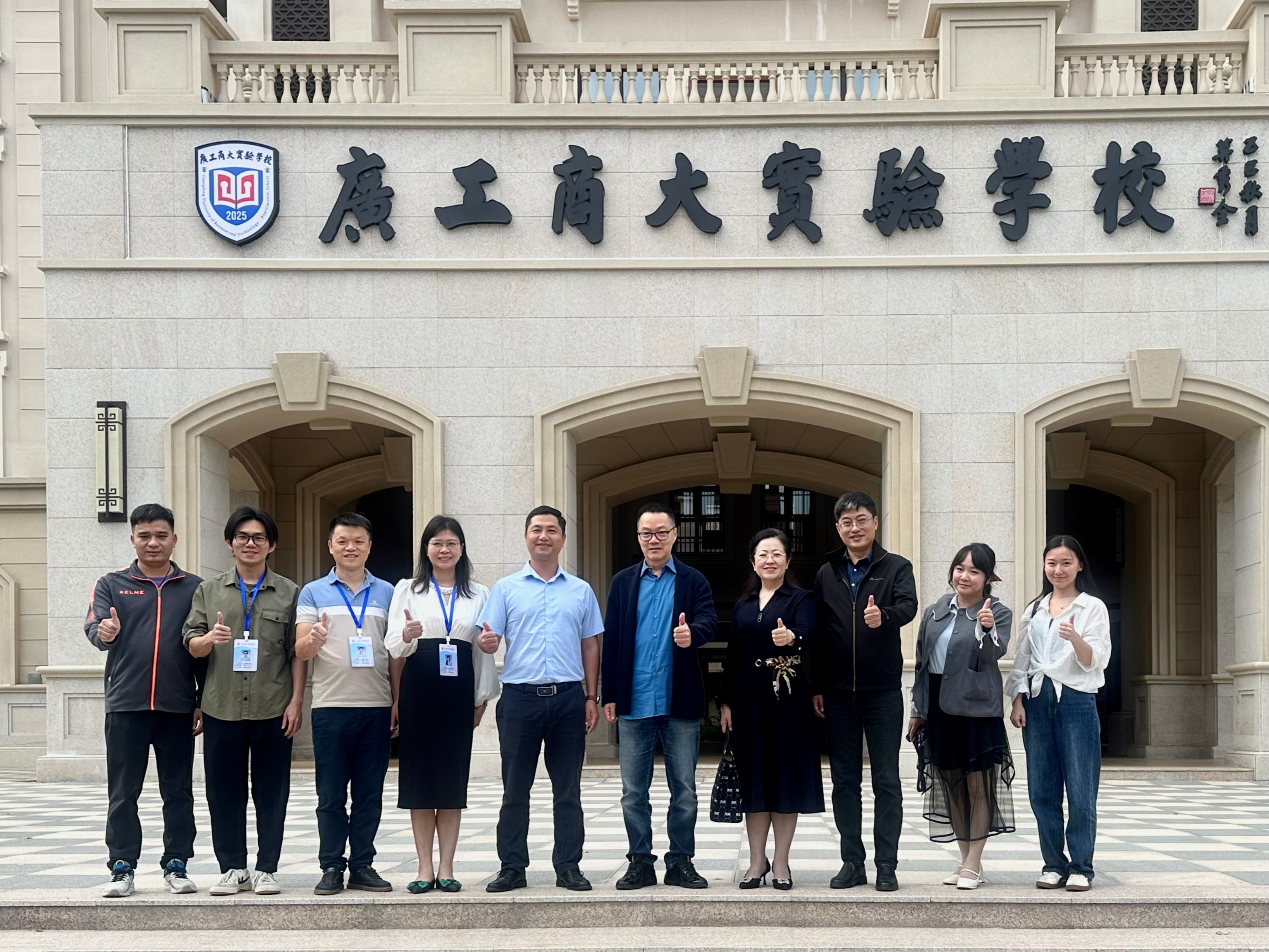 在广工商大实验学校校长钟作雄、书记钟颖瑜、音乐课程教师黄宇菲、主任雷众盛的带领下探访了校园,了解了学校环境设施、教学规划、师资队伍与学生情况。双方融洽交谈,顺利签署“肇庆学院音乐学院与广工商大实验学校共建实习见习基地”的相关协议。