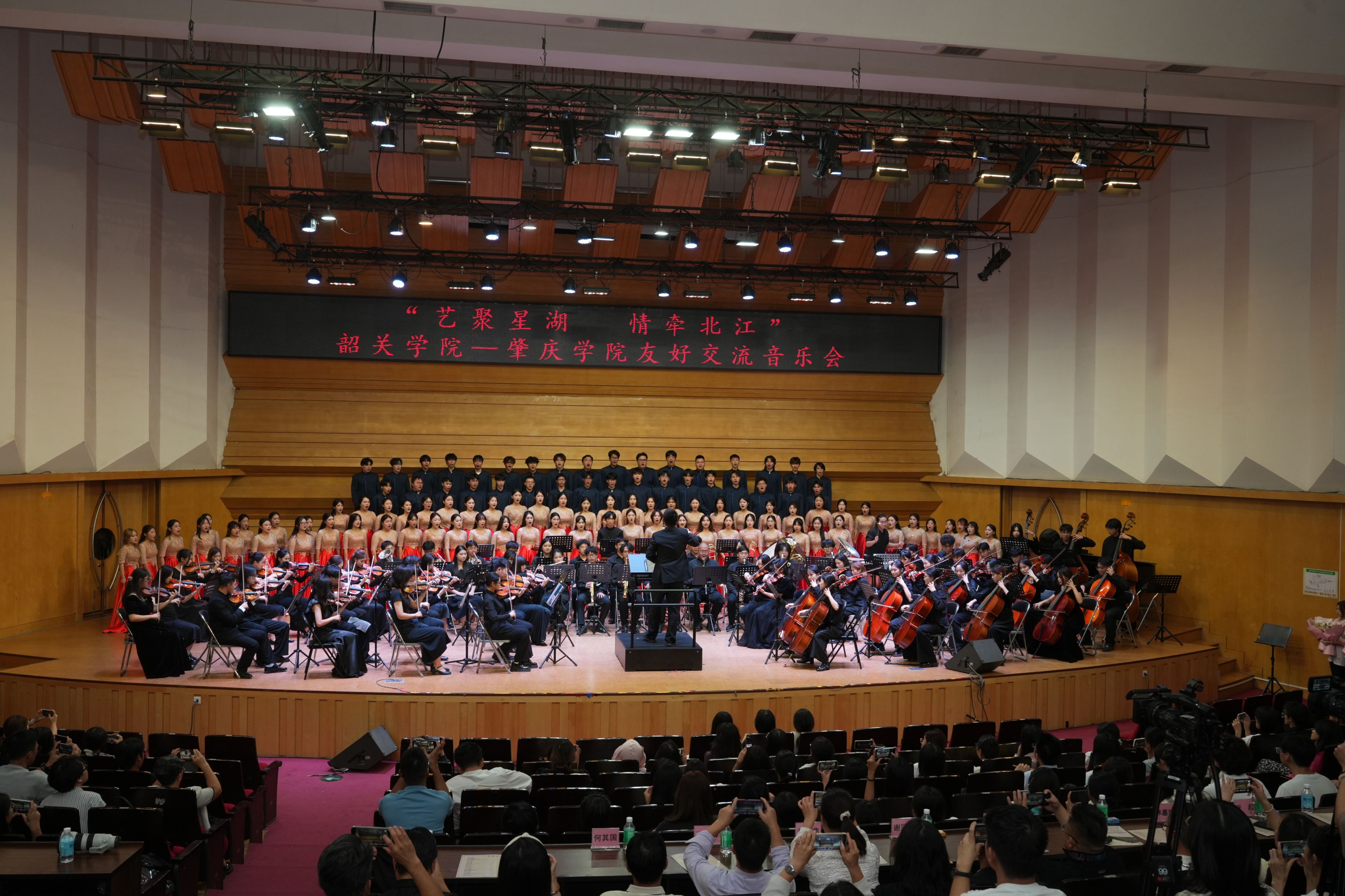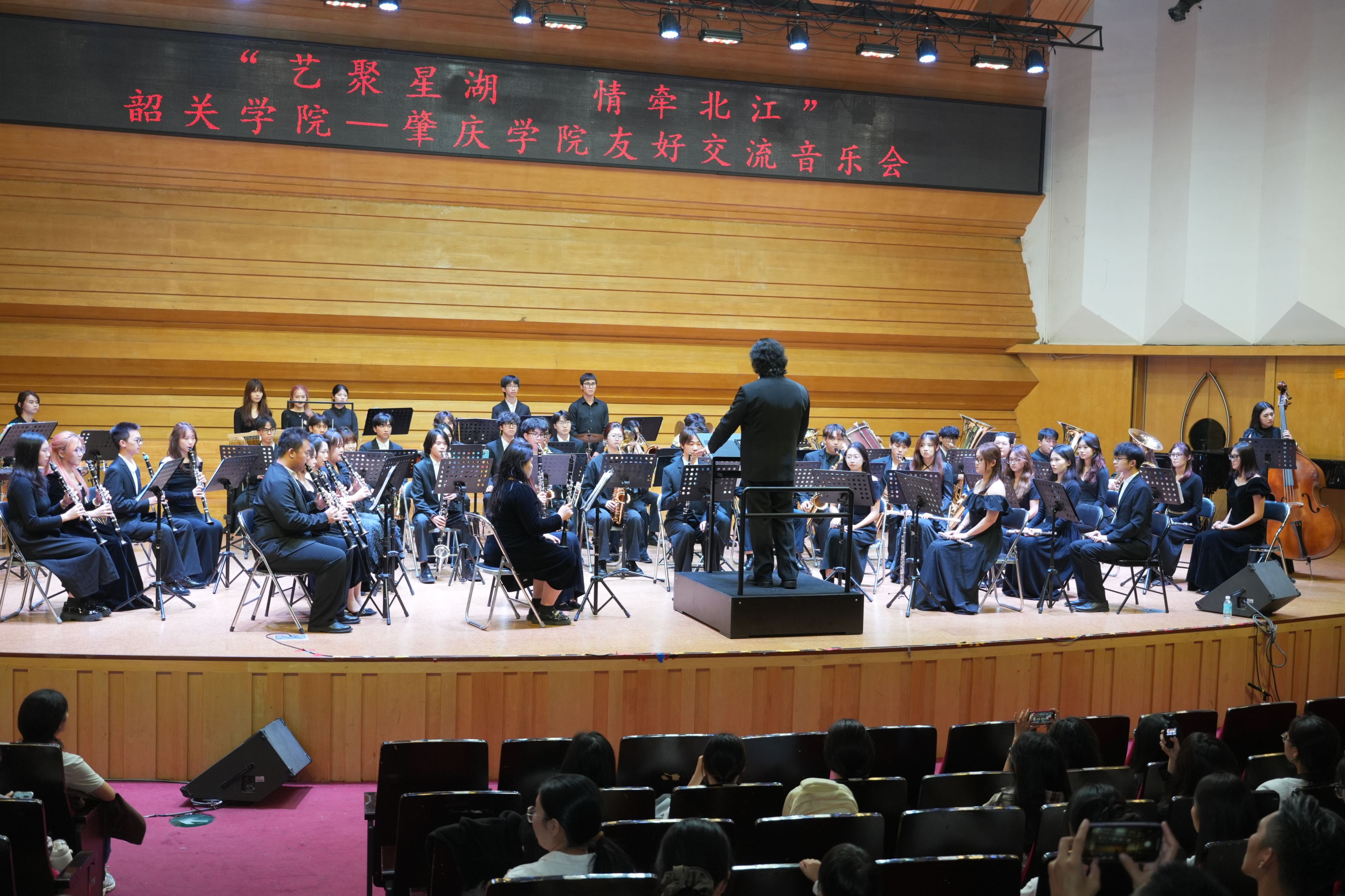为深化校际艺术交流,共促音乐教育发展,2025年10月30日19时30分,“艺聚星湖 情牵北江”韶关学院—肇庆学院友好交流音乐会在我校陈熹音乐厅华丽开启。本次音乐会由韶关学院、肇庆学院联合主办,共同承办,两校师生以乐为媒、共谱友谊乐章,为现场师生与嘉宾呈现了一场兼具专业水准与情感温度的艺术盛宴。