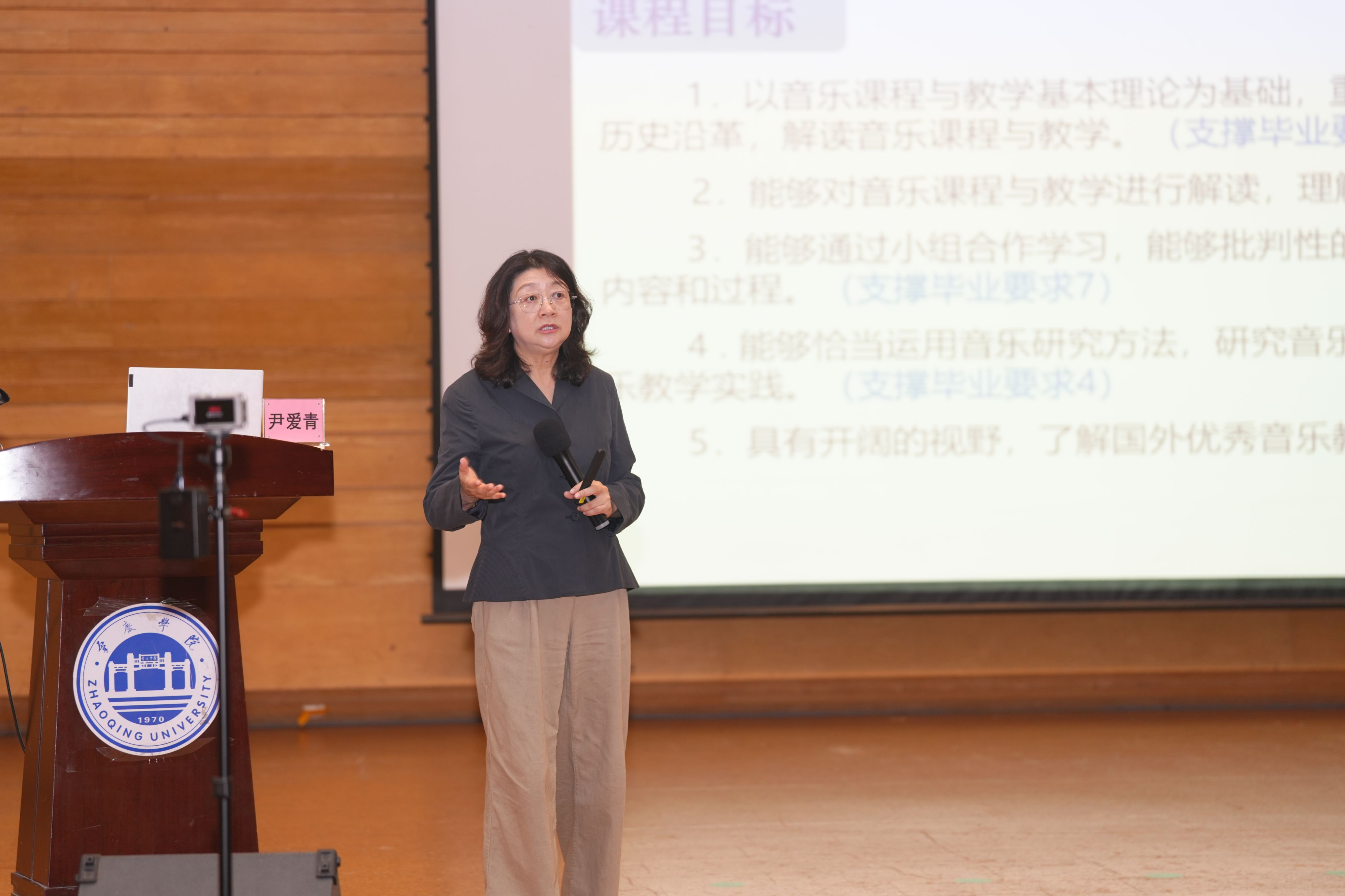 授证仪式后,尹爱青教授正式开启讲座。她围绕“师范类专业认证为什么、是什么、如何做”三大核心问题,结合政策文件解读、认证理念阐释与实践个案分析,层层递进地剖析了师范类专业认证的深层逻辑与音乐教师教育的发展路径。